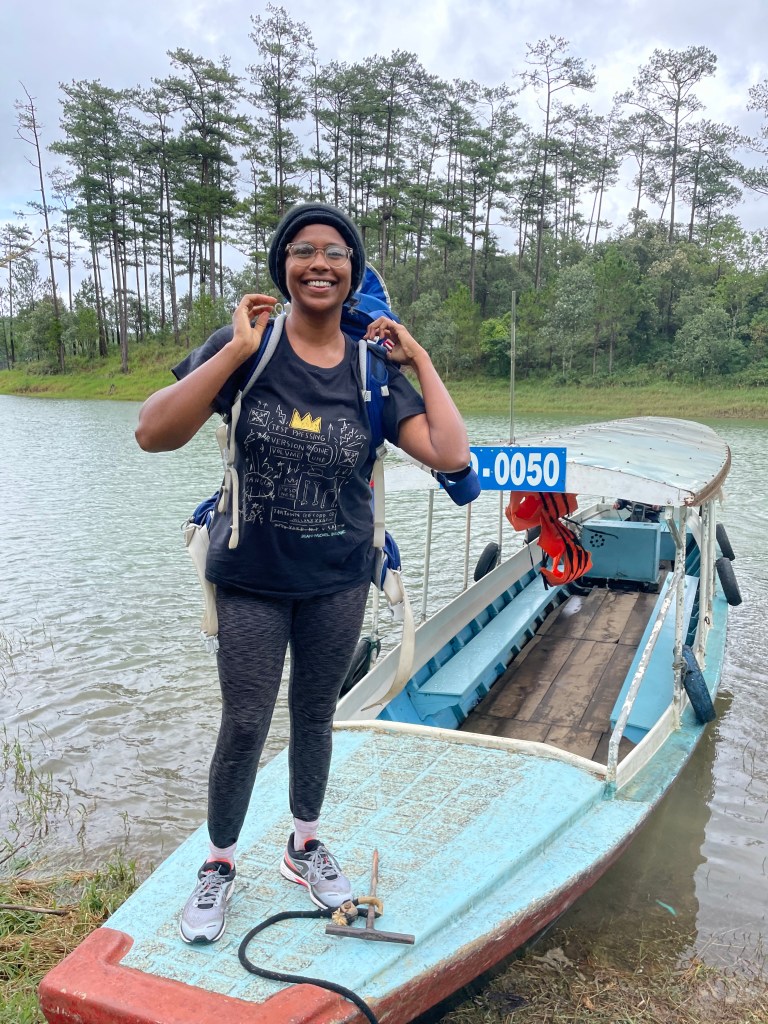 After a few hours of being wet and tired, we came out of the jungle and onto the shores of the vast Tuyem Lake. Arjun pointed out a “bad snail” on his arm which turned out to be a leech and we rubbed some saliva (as expounded by Linh and very effective) to pull it off. By then it was the end of our hike.