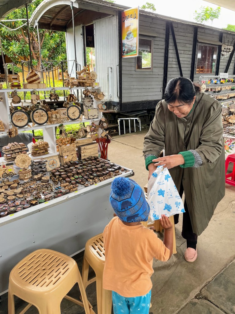 In Dalat, Thanh our host (at Vivian Inn) would shower him with snacks every morning. Her youngest sister( she had at least five from what we could count) would trade treats for hugs with Arjun. Not a great lesson for learning body autonomy but it is so common in Asia that no one blinks an eye. We also don’t insist that Arjun respond to any attempts at intimacy if he doesn’t feel like it himself.
