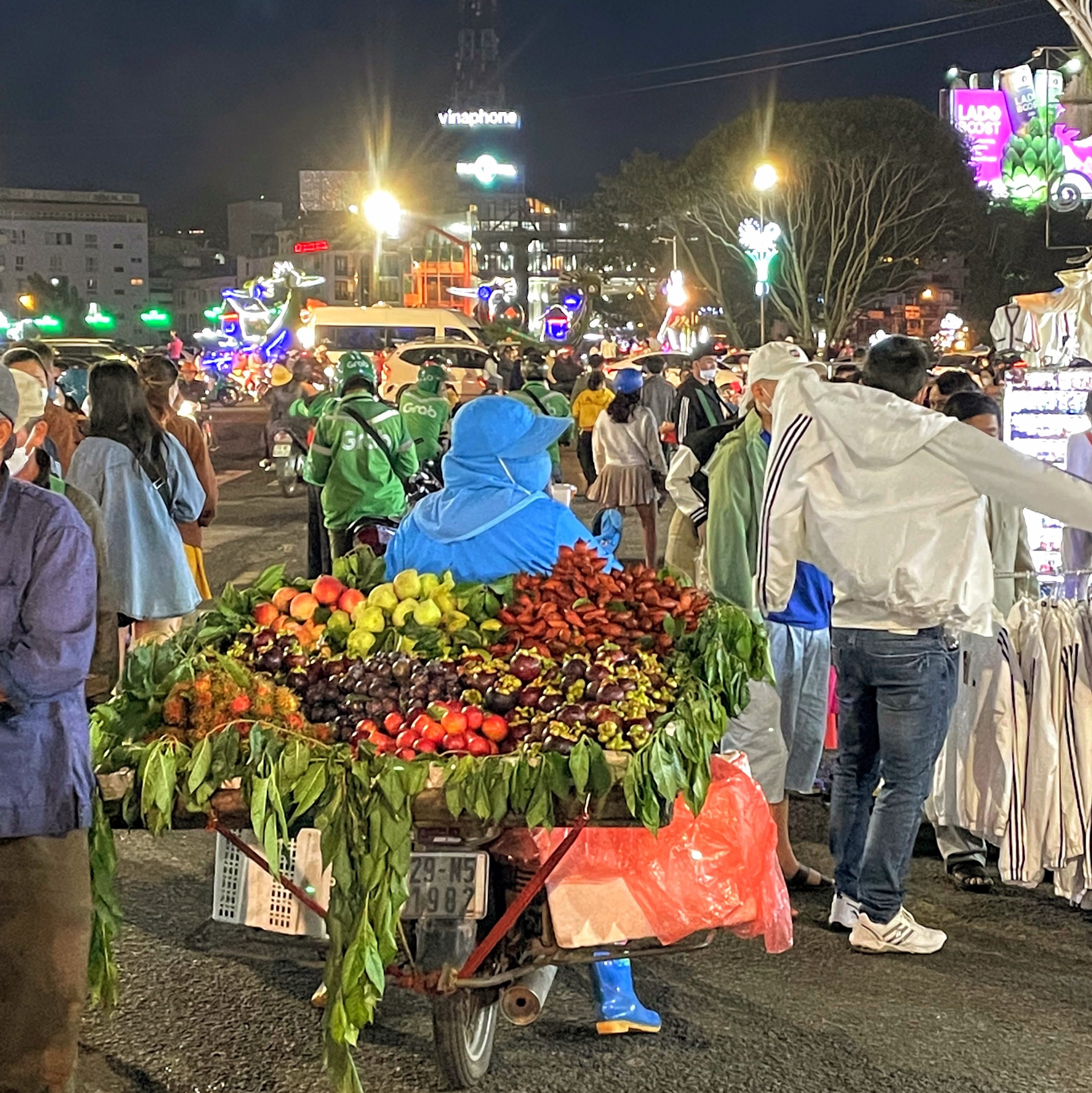 From sweating buckets and feeling like croissants in an oven in Saigon we took off on a plane and landed a mere thirty minutes later in Dalat, a beautiful mountain town in the highlands. The night markets are a phenomenon in Vietnam and the one in Dalat took the cake. A rather boring street becomes completely transformed at night like a drag queen chock full of clothes, food, and music.