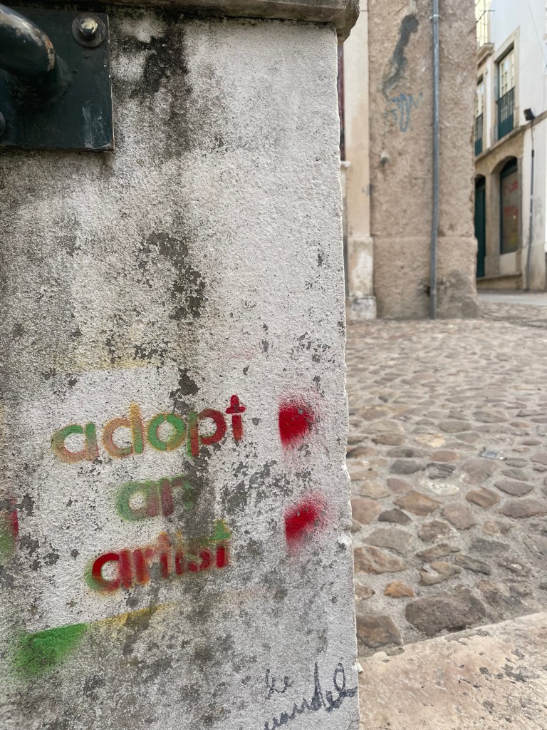 Coimbra bustles with students at all hours. Singing goes late into the night and is raucous. Seeing the orange earplugs provided in our bathroom made sense as midnight approached everyday. Students really do have a great time here. The streets are filled with graffiti that is purely artistic and oftentimes socialist. And I was very happy to find the most endearing of poetic writing and banal exchanges on the walls here in Coimbra.