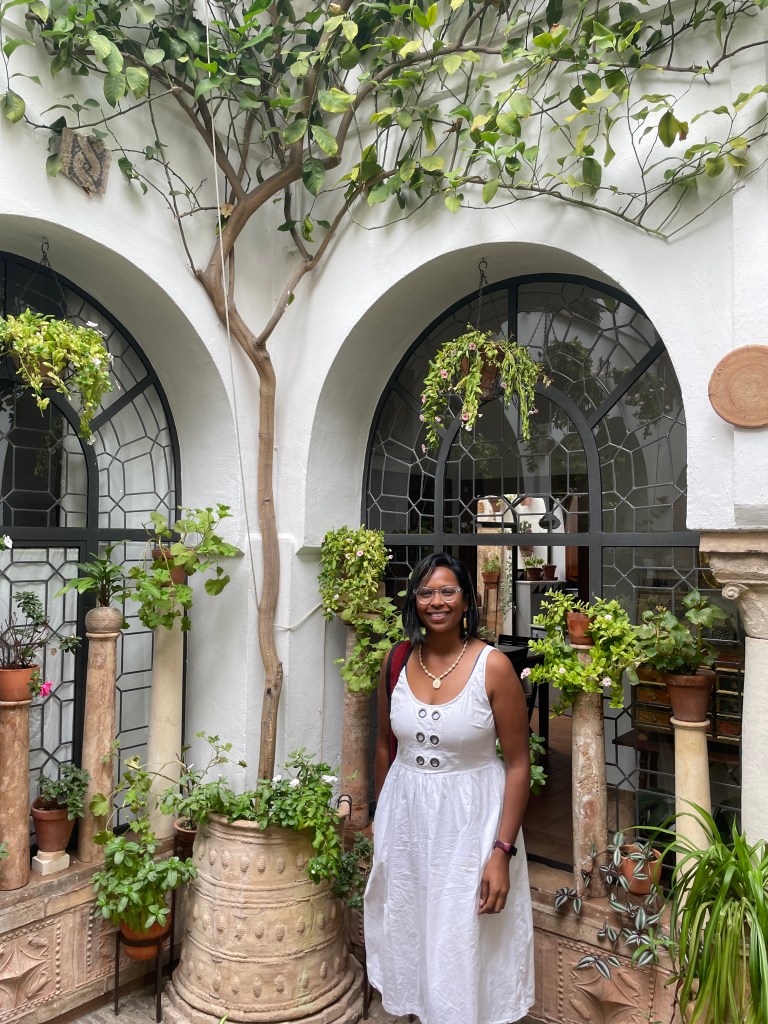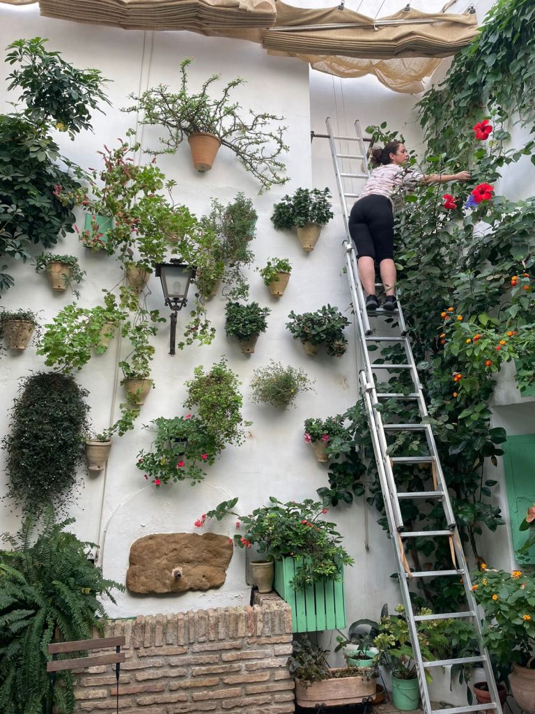We are suddenly in an alley with beautiful patios. We enter a home and creepers rise up the white walls. Flowers gush out of planters and an ancient lemon tree clings to the walls. Cordoba holds a patio festival, every year and we are at the home of one of the winners. The proud owner , points out a roman mosaic and claims that the lemon tree we saw earlier is from the time of the Moors.