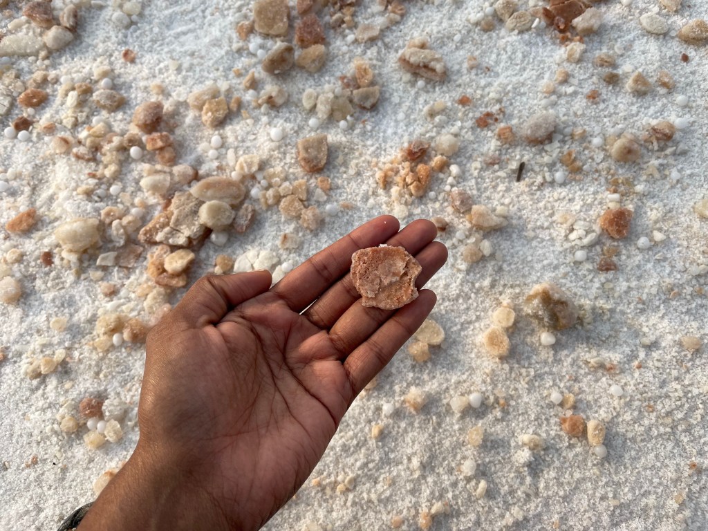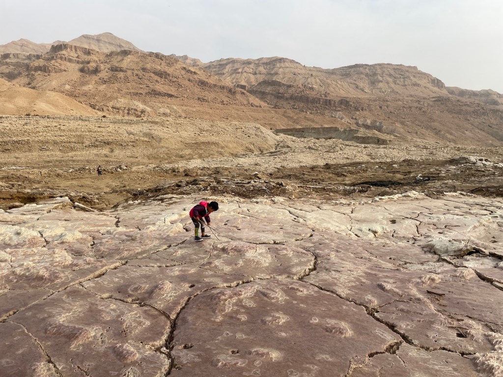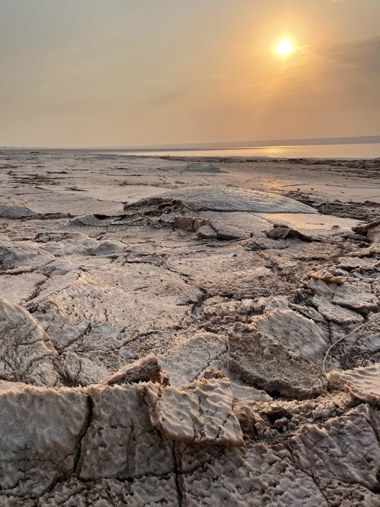 We walk along huge slabs of pinkish crusty salt and enjoy another swim. I’ve begun to love these briny soakings. We are the only souls here. Perhaps, the sharp gradient and the long walk mean that most people prefer to experience the dead sea in the more expensive resorts, where golf carts can ferry you to the water’s edge.