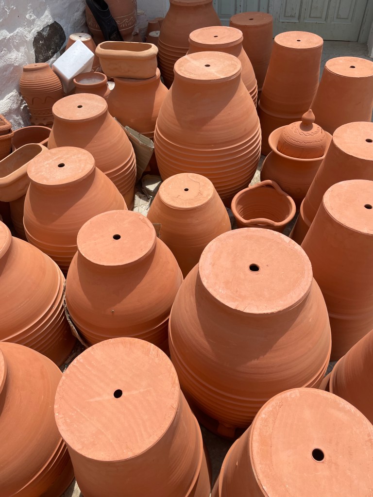 Why did the islanders become aesthetes? How is it that even a mundane ashtray becomes a ceramic piece of art here when in the barbarian mainlands people make do with aluminum ugliness? Giorgios a ceramic artist who runs a studio, on the way to the small settlement of Xerronisos, does not have an answer. He sits astride a spinning potter’s wheel, angled rather uncomfortably and the discs of wet clay, that shear off cleanly with a wire tool mesmerizes Arjun who stares as if in a trance. Outside, beautiful pots dry in the sun. The Cycladic law mandates that there be a friendly kitten.
